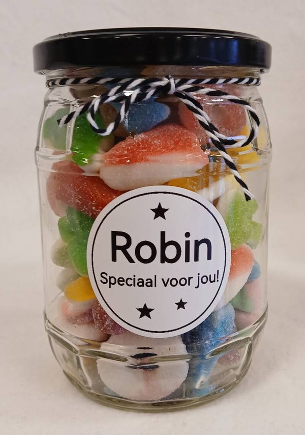 Snoeppot met naam.